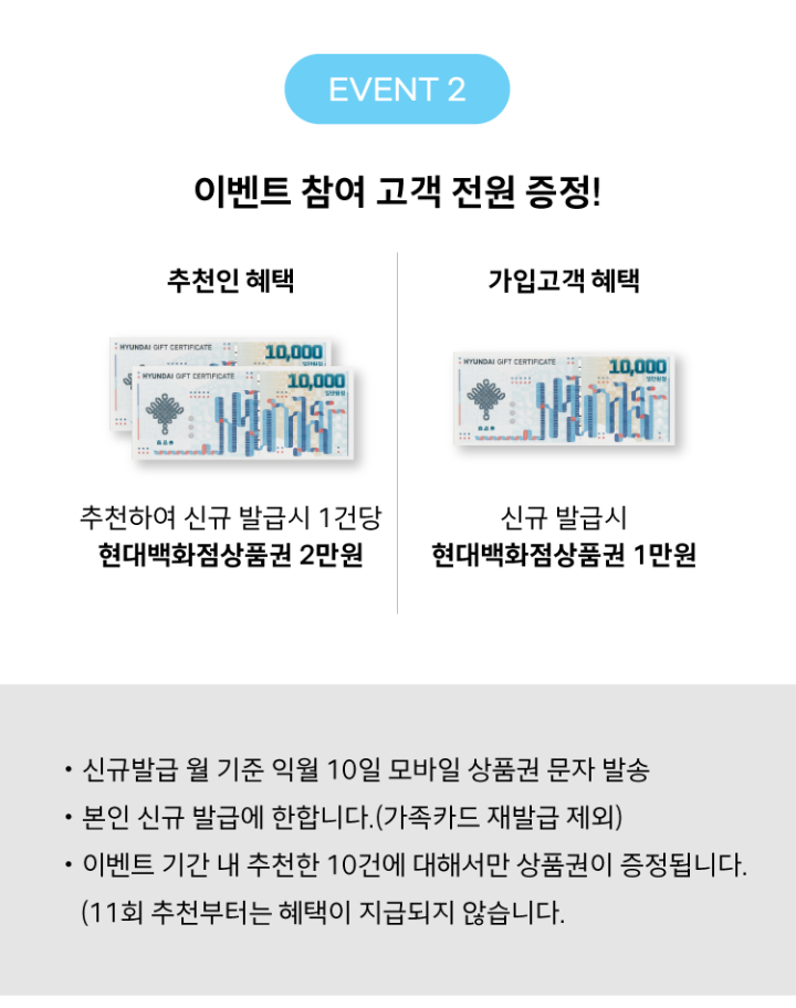 - 추천고객 혜택 : 추천 1건당 상품권 2만원