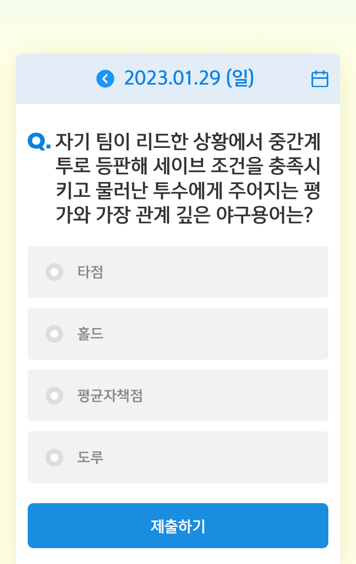 신한쏠, 야구상식 쏠퀴즈(23.01.29), 퀴즈정답, 자기 팀이 리드한 상황에서 중간계투로 등판