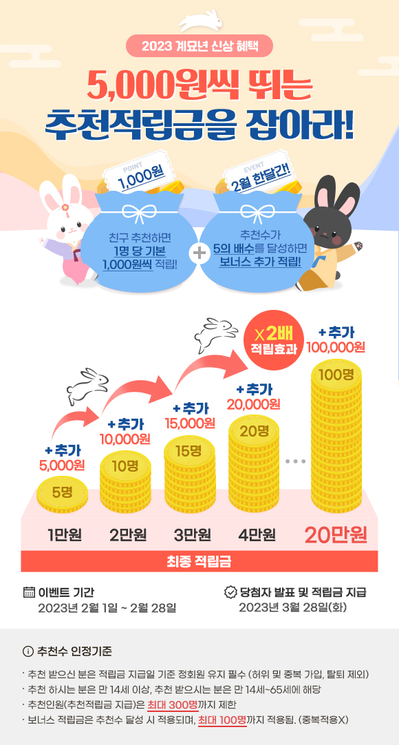 - 당첨자 발표 및 적립금 지급 : 2023년 3월 28일