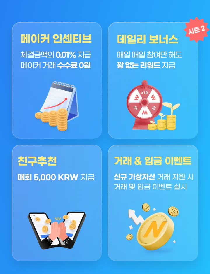 - 메이커 인센티브 : 체결금액의 0.01% 지급, 메이커 거래 수수료 0원