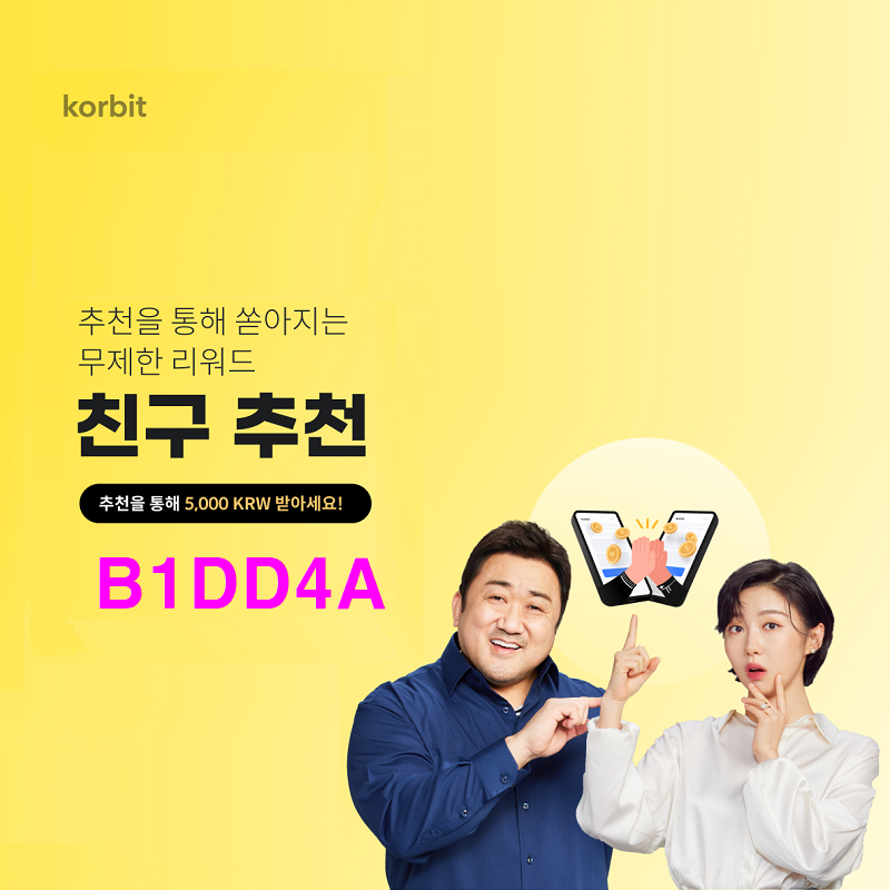 ▷ 초대링크 : https://exchange.korbit.co.kr/sign-up/?referral_code=B1DD4A