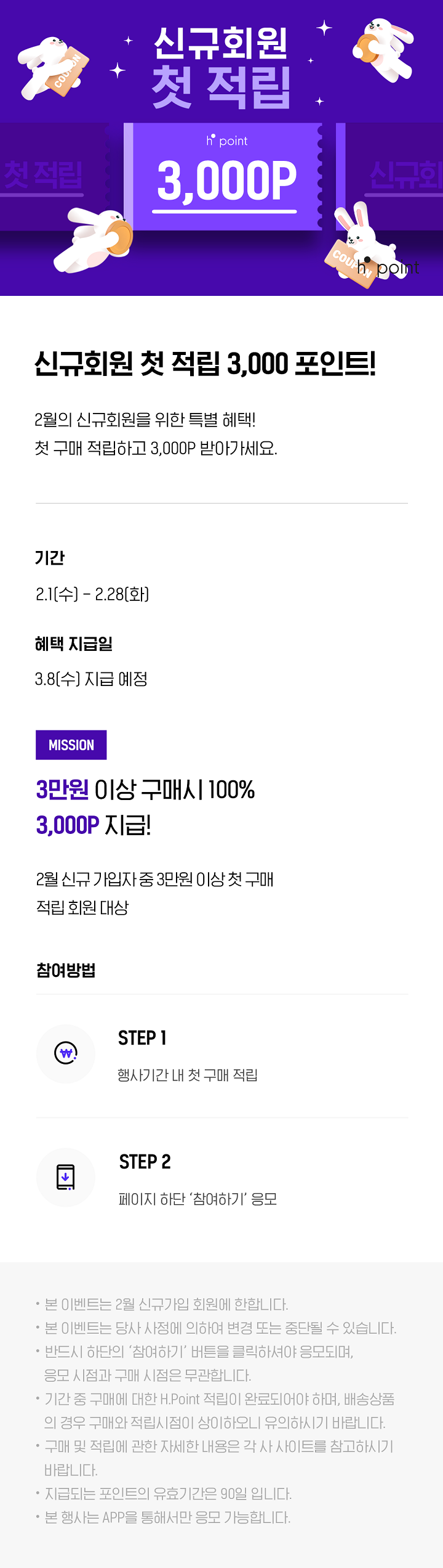 * 2월 신규 가입자 중 3만원 이상 첫 구매 적립 회원 대상