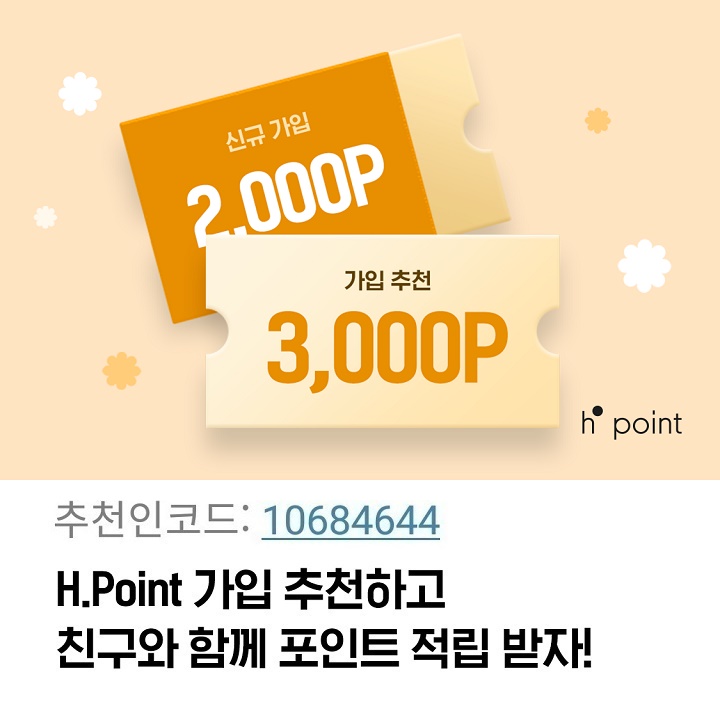 H.Point 신규회원 첫적립 3000포인트 이벤트( 추천 코드 : 10684644 )