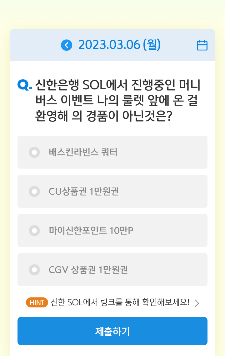 신한쏠, 야구상식 쏠퀴즈(23.03.06), 퀴즈정답, 머니버스 이벤트