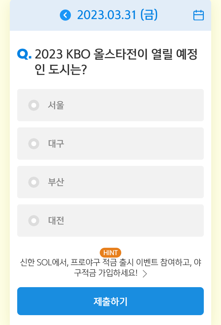 신한쏠, 야구상식 쏠퀴즈(23.03.31), 퀴즈정답, 2023 KBO 올스타전
