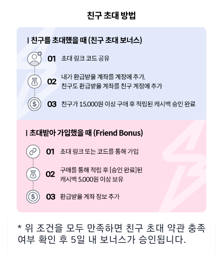 * 조건을 모두 만족하면 친구 초대 약관 충족 여부 확인 후 5일 내 보너스가 승인된다.