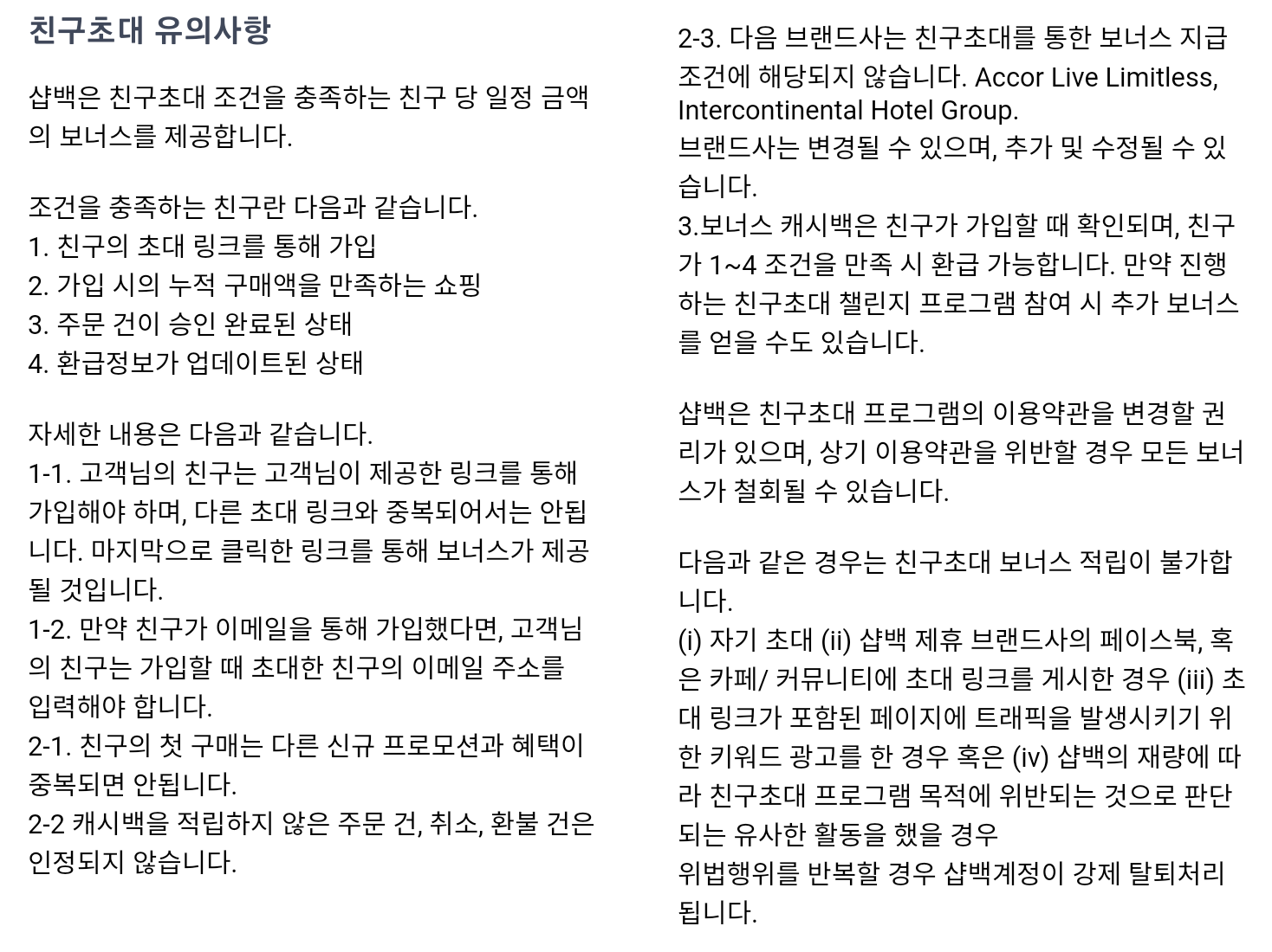 ▣ 샵백 친구초대 유의사항