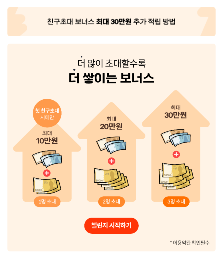 3) 3명 초대시 : 최대 30만원