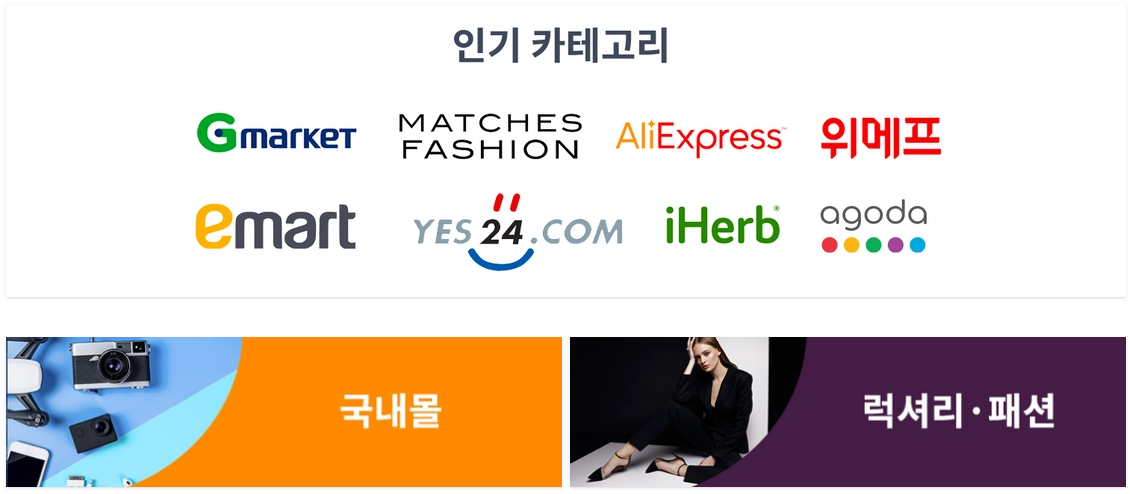 - 지마켓, 위메프, 이마트 등에서 캐시백 적립 가능!