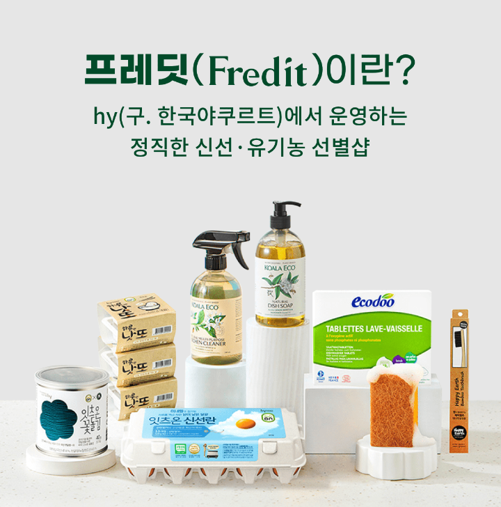- 프레딧은 hy(구. 한국야쿠르트)에서 운영하는 정직한 신선, 유기농 선별샵이다.