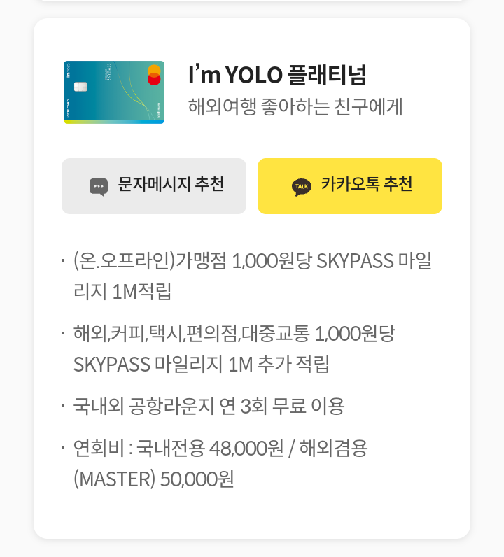 ▶ I'm YOLO 플래티넘 카드 혜택
