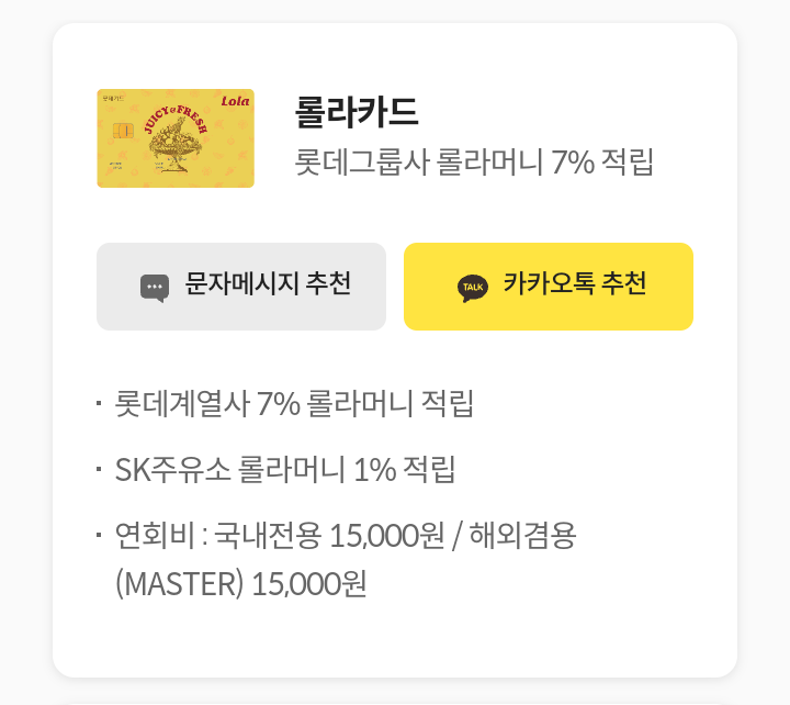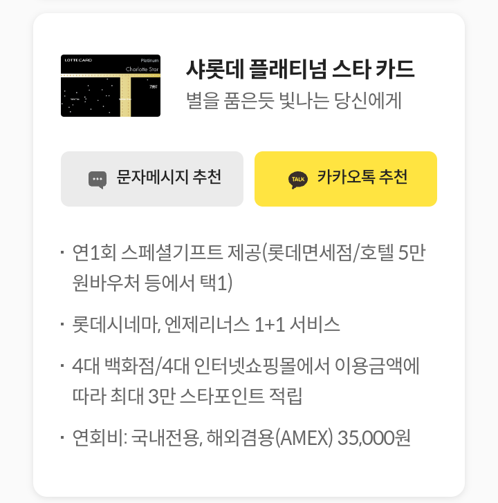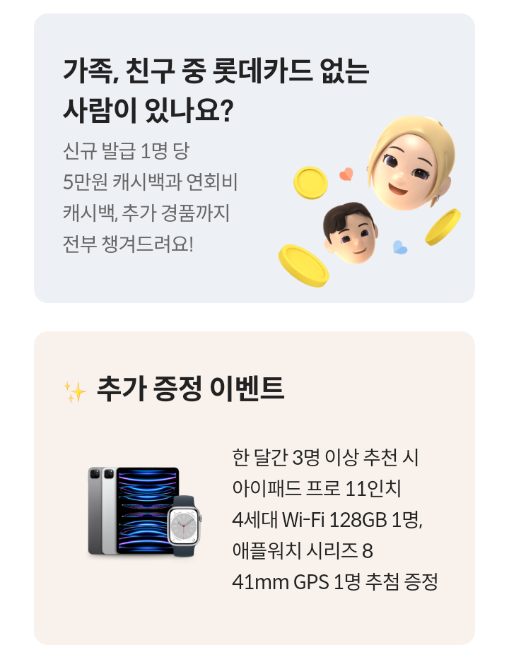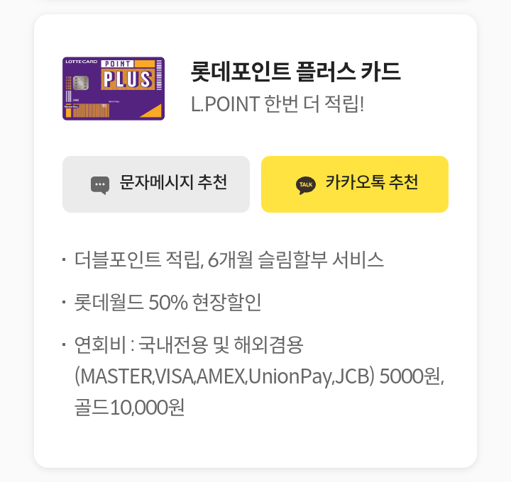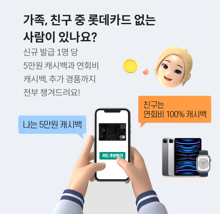 - 대상/대상카드 :롯데카드 회원 / 친구에게 카드 추천 대상카드