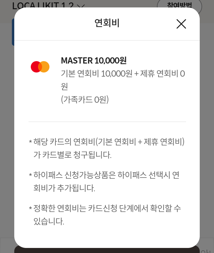 - 해외겸용(MSATER) 10000원(기본 10000원+제휴 0원)(가족카드 0원)
