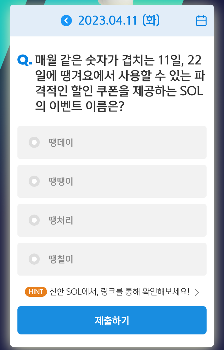 신한쏠, 야구상식 쏠퀴즈(23.04.11), 퀴즈정답, 땡겨요에서 사용할 수 있는