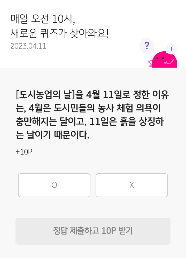 KB Pay 오늘의 퀴즈(23.04.11), 퀴즈정답, 도시농업의 날