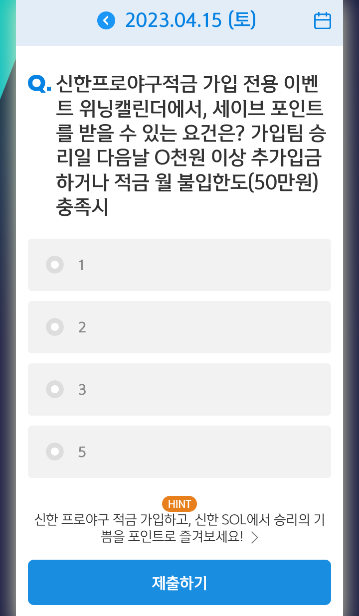 신한쏠, 야구상식 쏠퀴즈(23.04.15), 퀴즈정답, 세이브 포인트를 받을 수 있는 요건