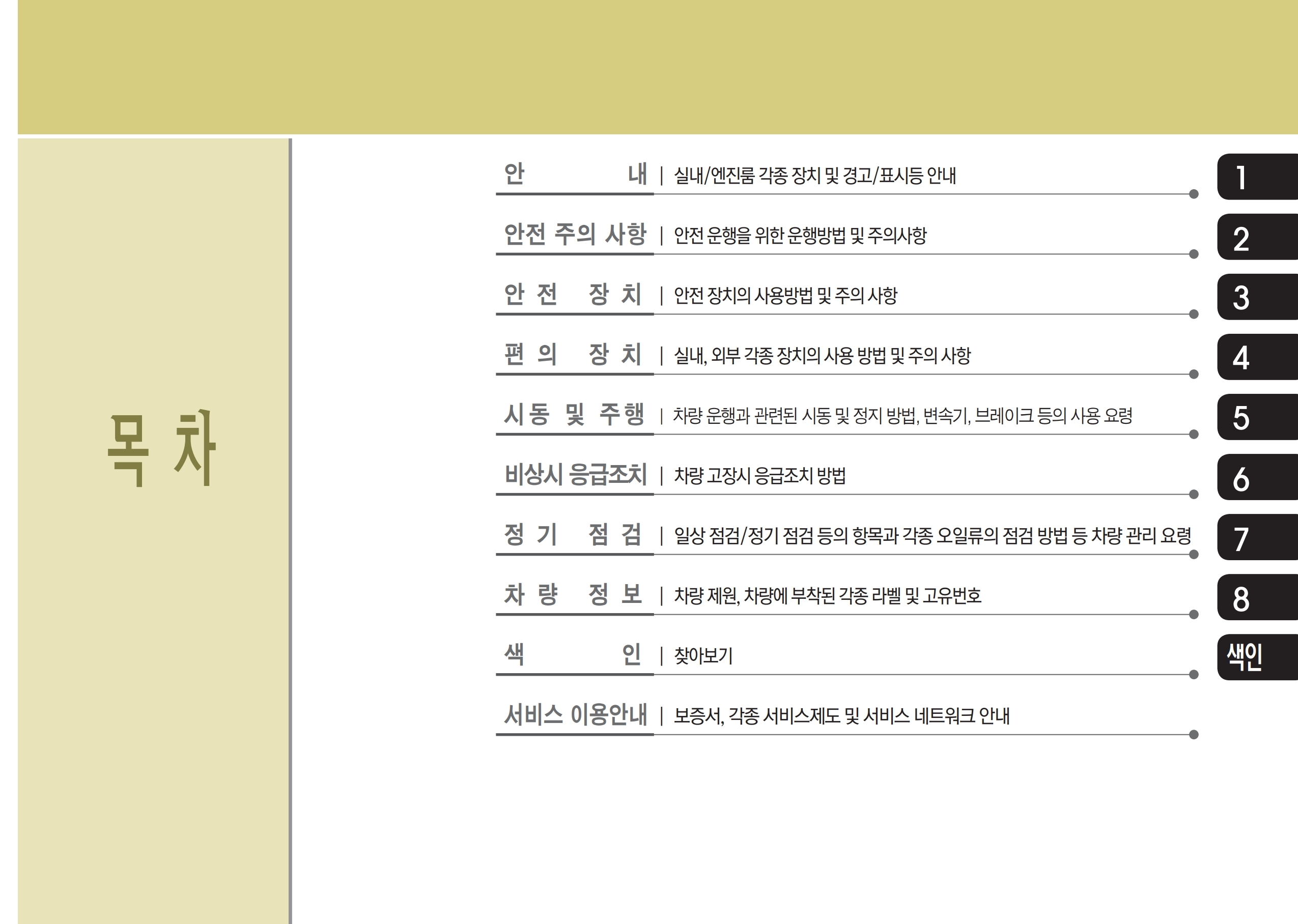 차량 사용 설명서 & 가이드 구분 판매단종 분류 차량명 연식 차량 연식을 클릭하시면 해당 연식의 사용 설명서를 확인할 수 있습니다. 검색 차량 사용 설명서 인포테인먼트 매뉴얼 ※ 기본차 부