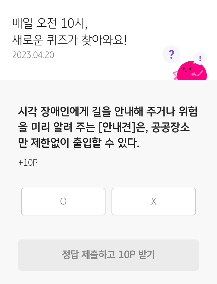 KB Pay 오늘의 퀴즈(23.04.20), 퀴즈정답, 시각 장애인에게 길을 안내해 주거나