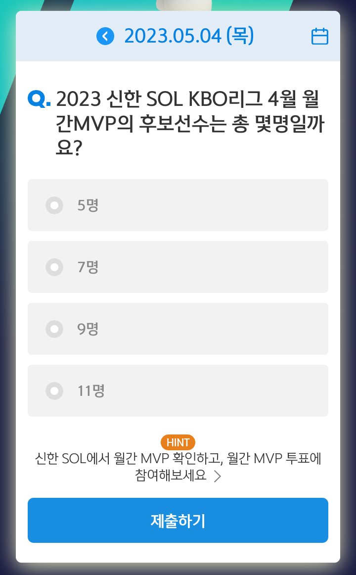 매일 야구상식 쏠퀴즈 풀고 마이신한포인트 받아가세요.