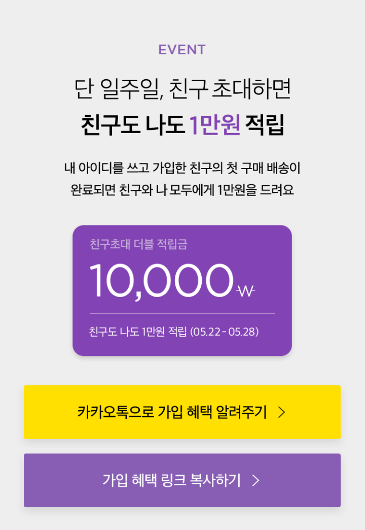 * 적립금은 친구의 첫 주문이 배송 완료되면 영업일 기준 2일 내 지급된다.