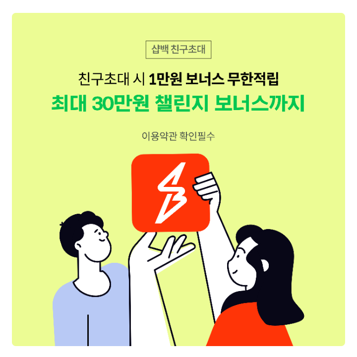 샵백(SHOPBACK)에서 친구초대 이벤트를 진행하고 있다. 친구가 추천링크를 통해 샵백에 가입하면 1만원 보너스가 무한적립 되고, 최대 30만원 추가 챌린지 보너스가 적립된다.
