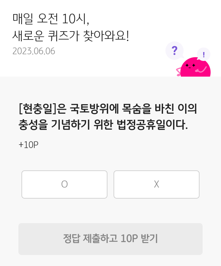 KB Pay 오늘의 퀴즈(23.06.06), 퀴즈정답, 현충일은 국토방위에 목숨을 바친