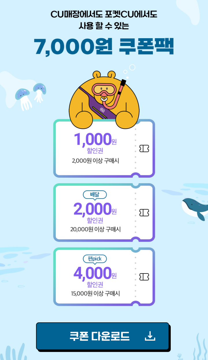 포켓CU 가입하고 7천원 쿠폰팬 받아가세요.