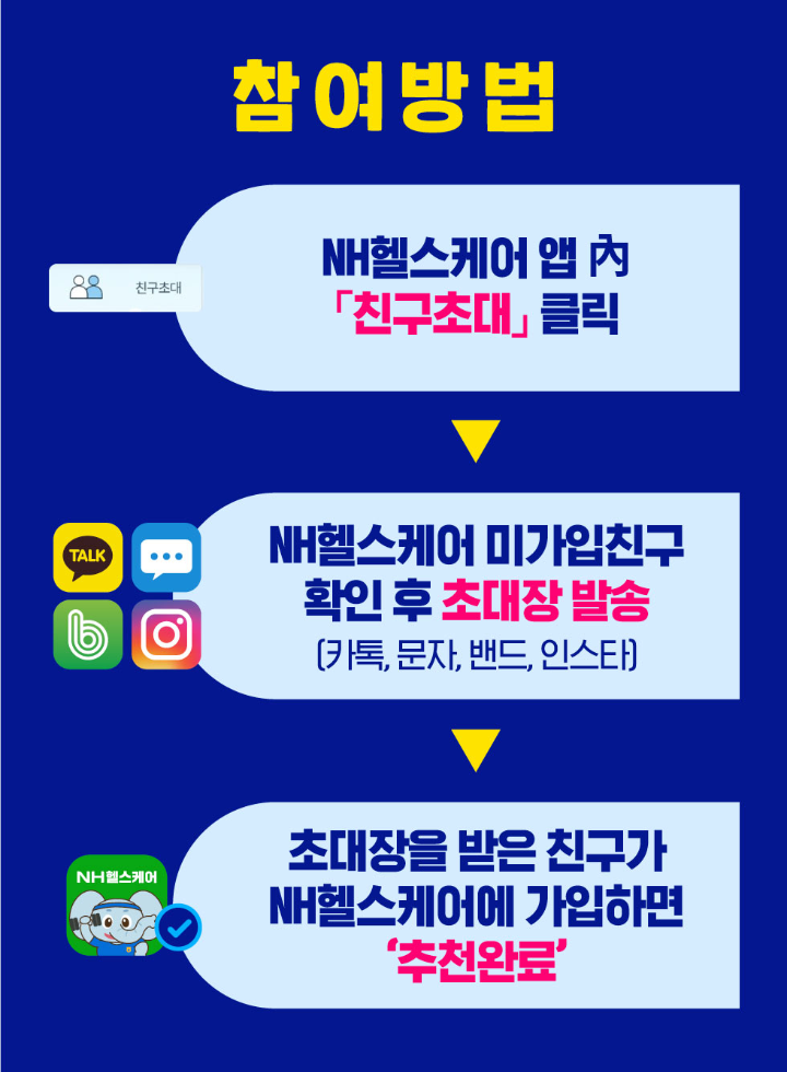 ③ 초대장을 받은 친구가 NH헬스케어에 가입하면 '추천완료'