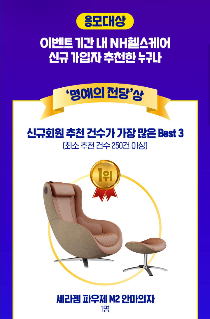 ▶ 응모대상 : 이벤트 기간 내 NH헬스케어 신규 가입자 추천한 누구나