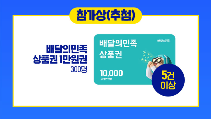 - 배달의 민족 상품권 1만원권(300명)(추천 건수 5건 이상)
