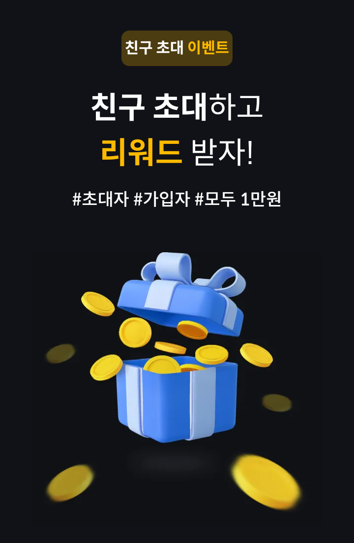 초대한 회원과 초대 받아 가입한 회원 모두 리워드 1만원이 지급된다. 이벤트 기간 동안 초대를 받아 가입한 회원이 원화마켓에서 첫 거래 시 리워드가 지급된다.