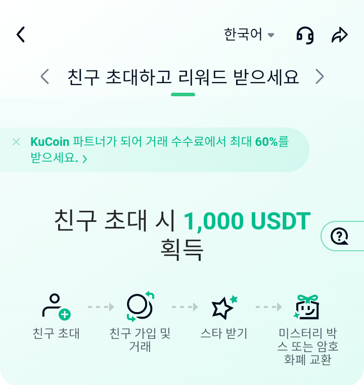 앱테크, 쿠코인(Kucoin) 친구 초대하고 리워드 받자( 추천 코드 : rPY5AQ3 )