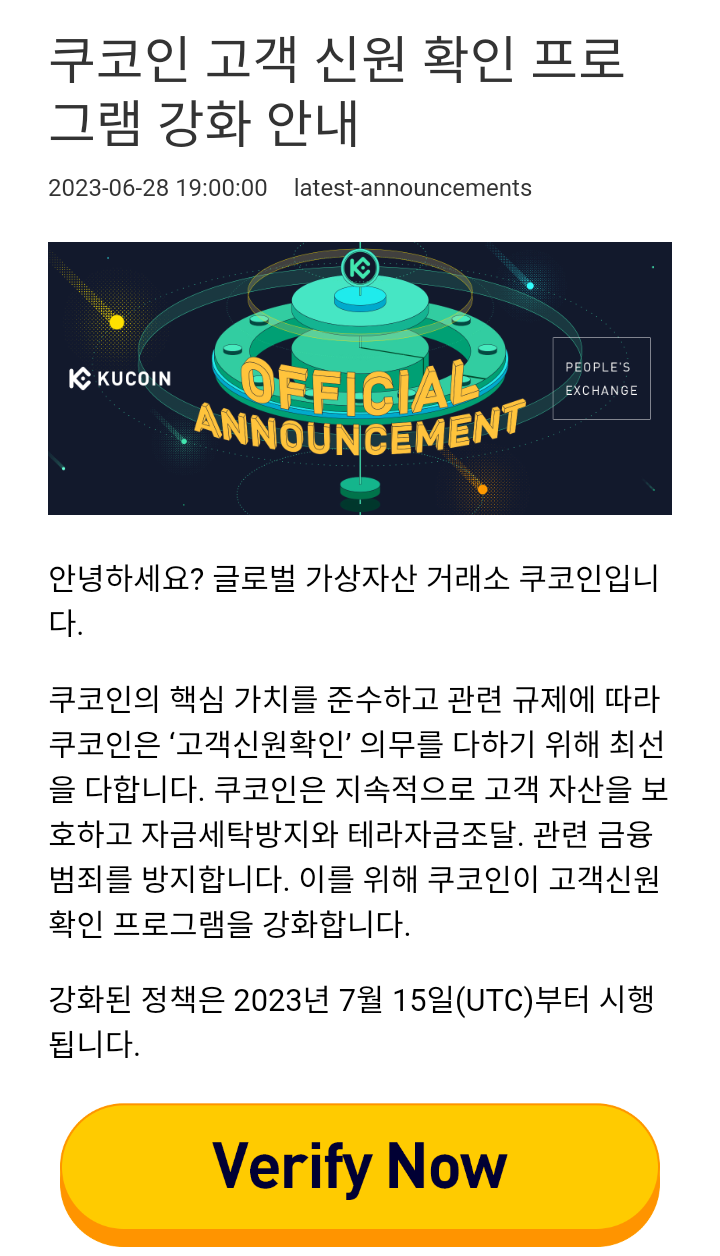 ▶ 쿠코인 고객 신원 확인 프로그램 강화