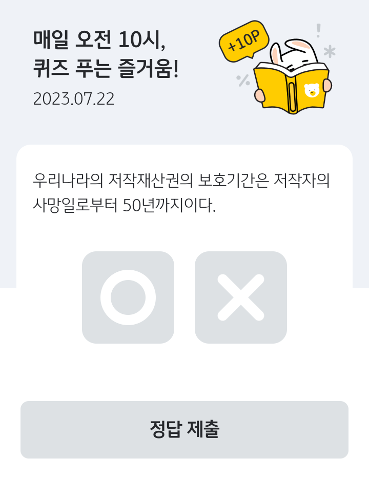 KB Pay 오늘의 퀴즈(23.07.22), 퀴즈정답, 저작재산권의 보호기간은