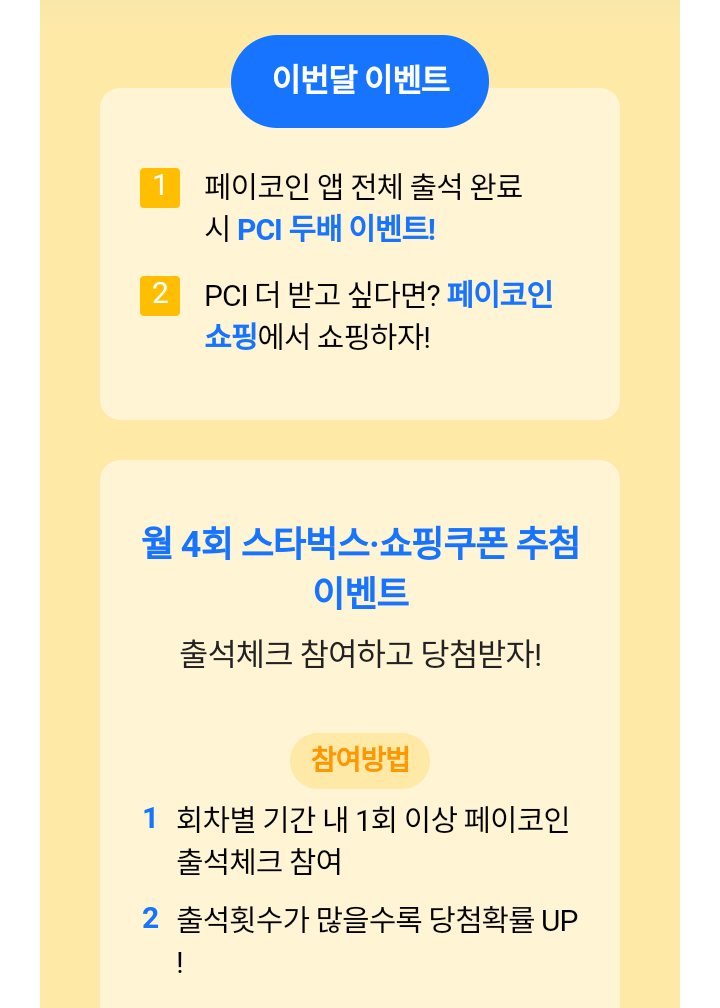 - 페이코인 앱 전체 출석 완료시 PCI 두배 이벤트!