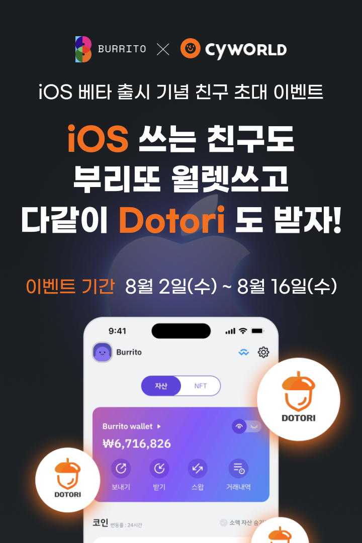 부리또 월렛 가입하고 도토리 코인도 받아보세요.