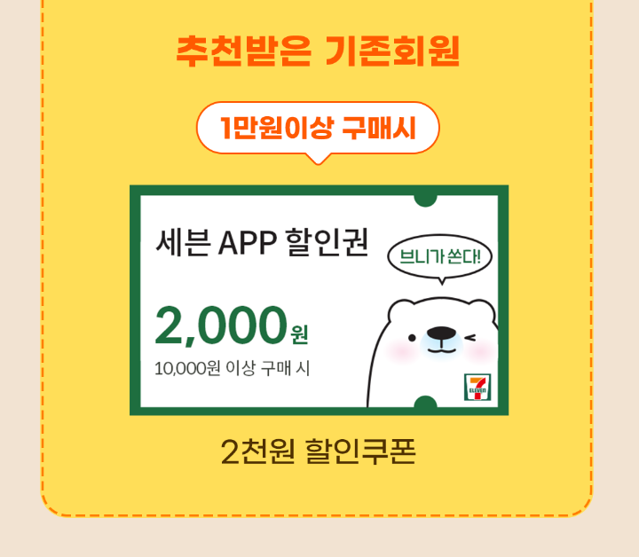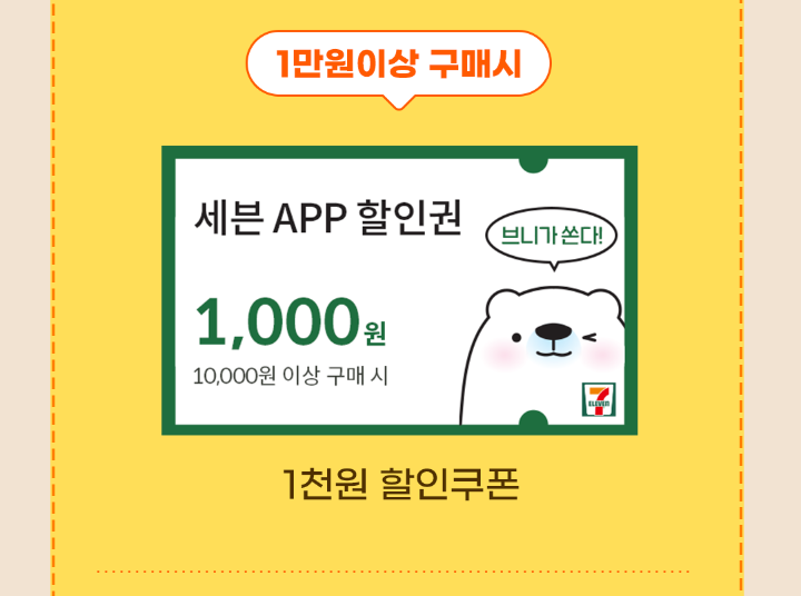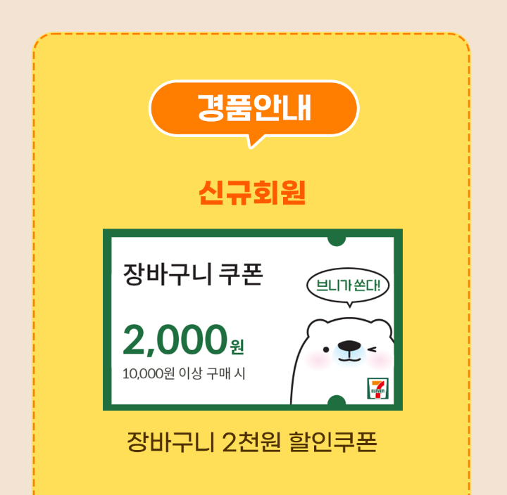- 장바구니 쿠폰 2000원, 세븐 APP 할인권 1000원