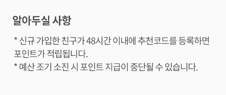 - 지금 설치하시고 추천인 코드를 입력하시면 추천인과 신규가입자 모두 500포인트 적립된다.