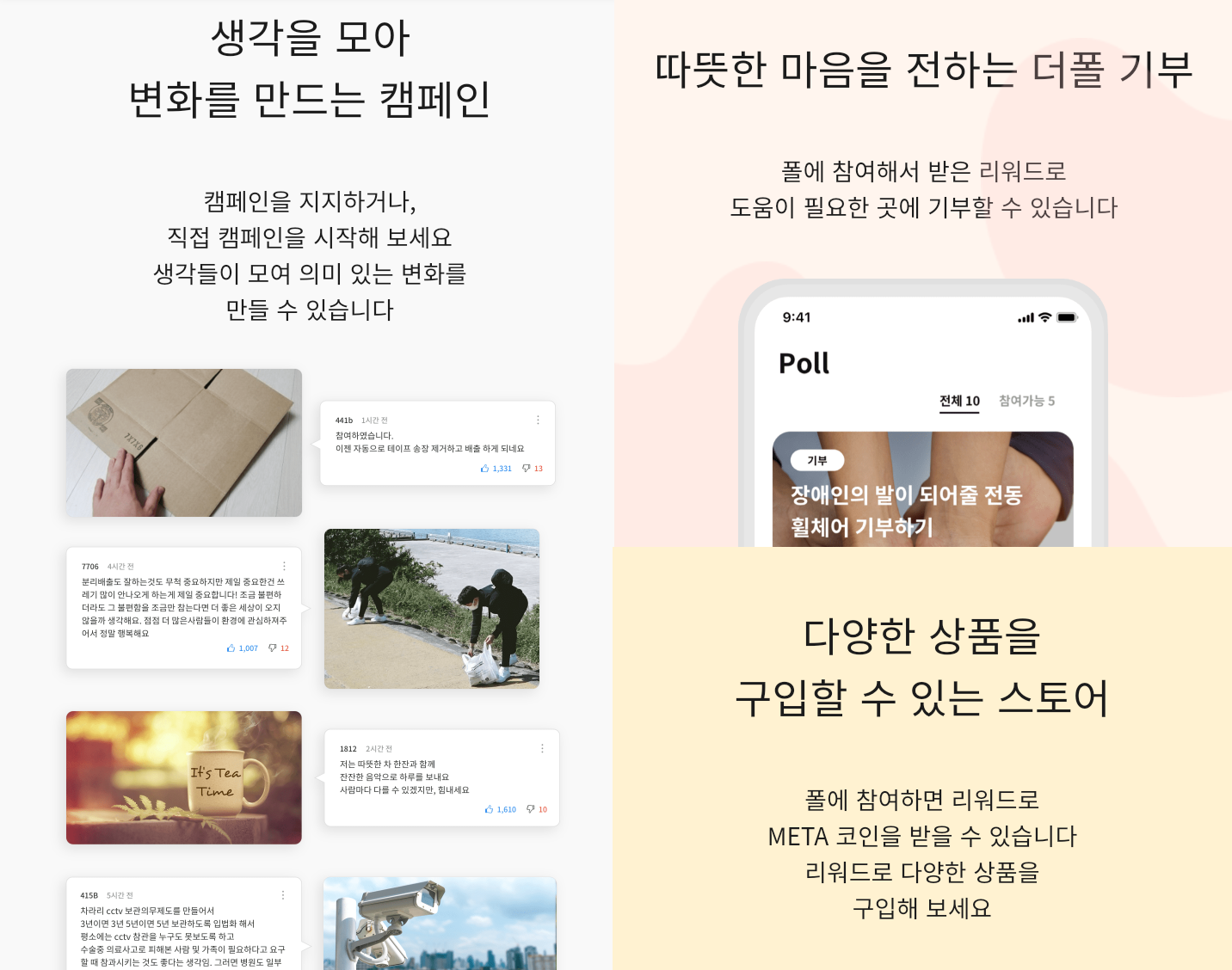 - 누구나 서베이/ 캠페인/ 기부 등 폴 진행 가능