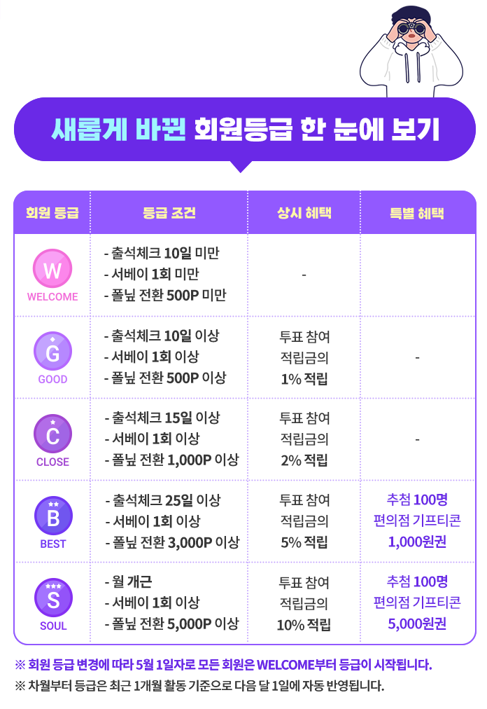 ※ 차월부터 등급은 최근 1개월 활동 기준으로 다음 달 1일에 자동 반영된다.