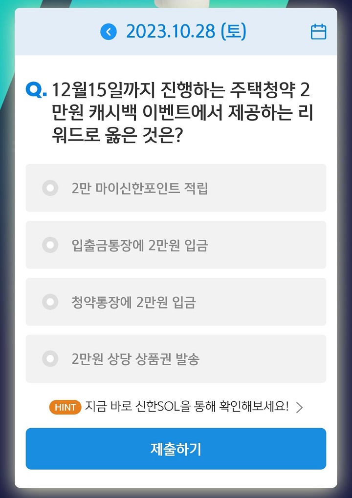 신한쏠, 야구상식 쏠퀴즈(23.10.28), 퀴즈정답, 주택청약 2만원 캐시백 이벤트