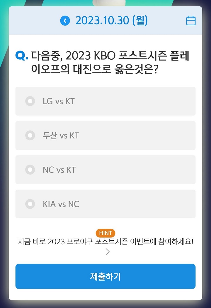 신한쏠, 야구상식 쏠퀴즈(23.10.30), 퀴즈정답, 포스트시즌 플레이오프의 대진