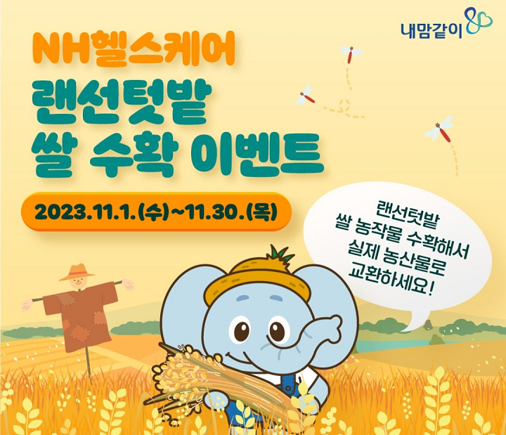 NH헬스케어 가입하고 500포인트도 받고, 쌀 수확 이벤트에도 응모하세요.
