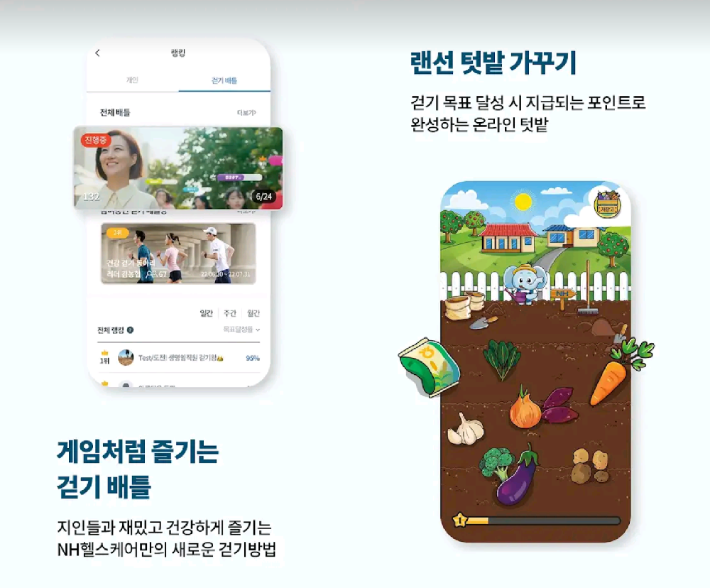 - 걷기배틀 : 지인들과 재밌고 건강하게 즐기는 NH헬스케어만의 새로운 걷기 방법
