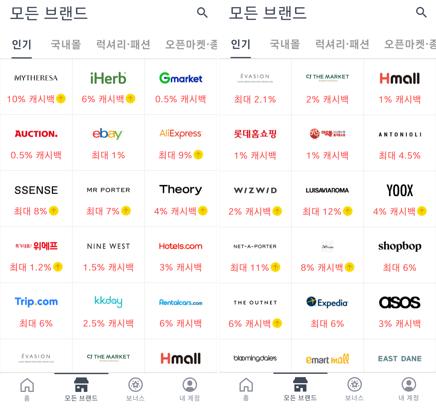 - 200여개 인기 브랜드에서 캐시백 적립 가능