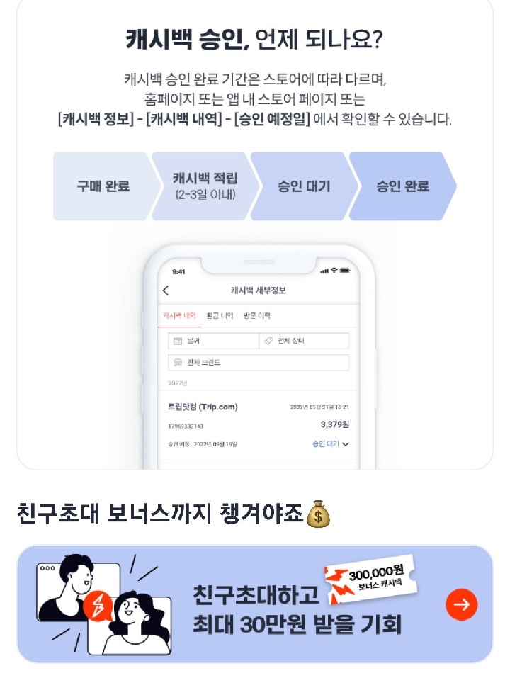 ③ 초대받아 가입한 친구가 구매한 건에 대한 승인 완료된 캐시백 보유하기