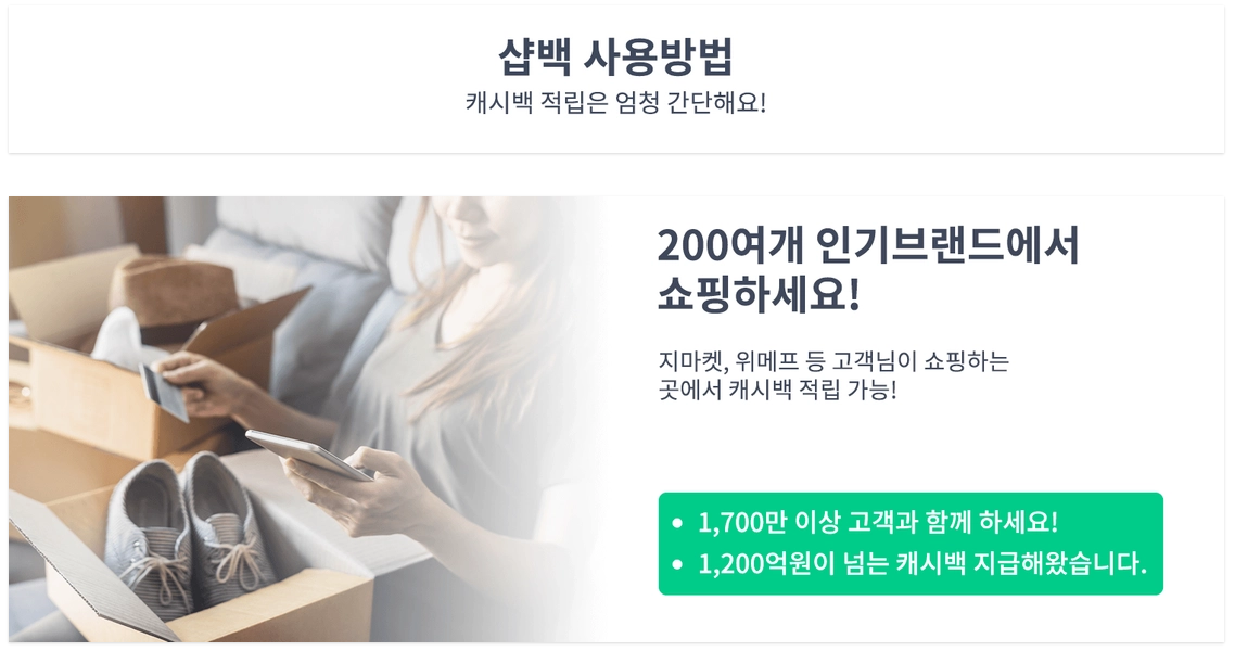 샵백에서 똑똑한 쇼핑을 시작해보세요