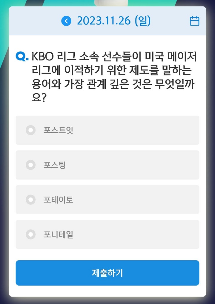 신한쏠, 야구상식 쏠퀴즈(23.11.26), 퀴즈정답, 미국 메이저리그에 이적하기 위한 제도