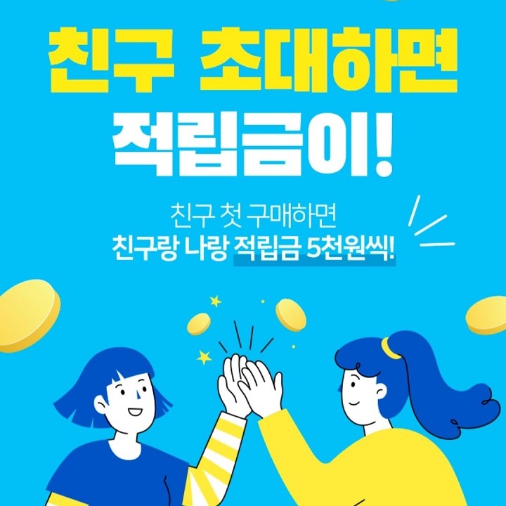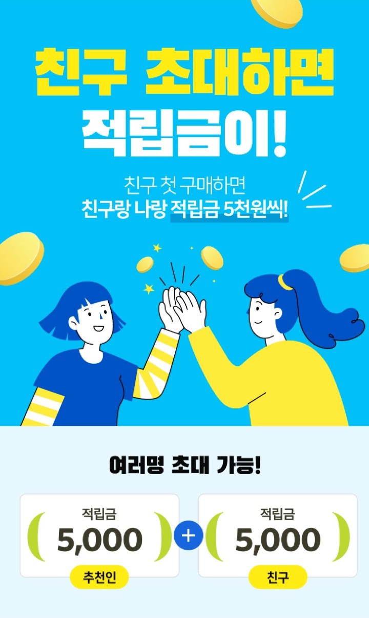 친구 초대하면 적립금이! 첫 구매하면 친구랑 나랑 적립금 5천원씩!
