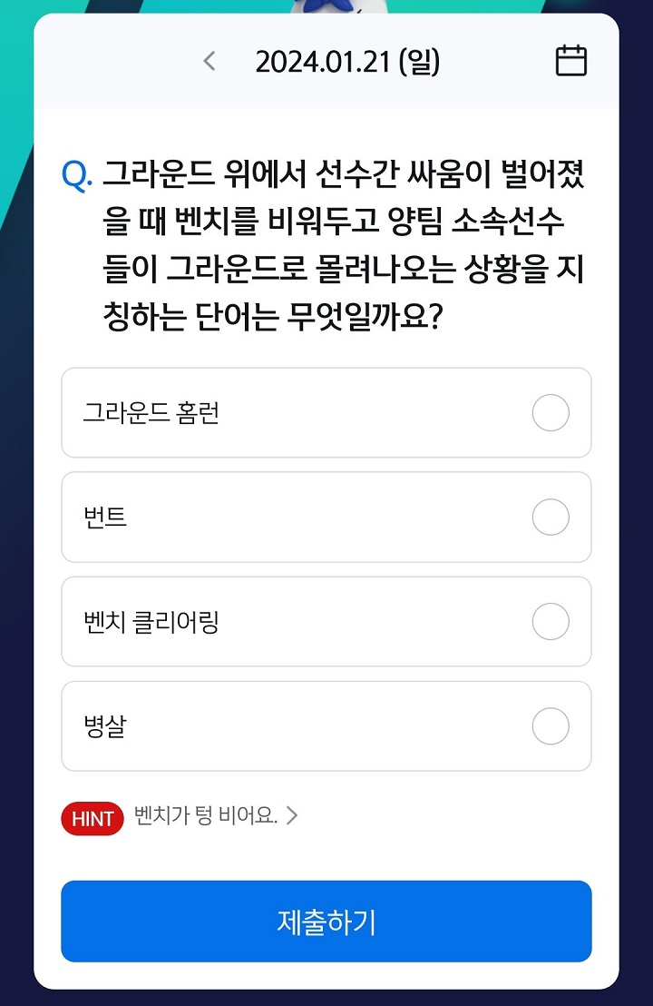 신한쏠, 야구상식 쏠퀴즈(24.01.21), 퀴즈정답, 그라운드 위에서 선수간 싸움이